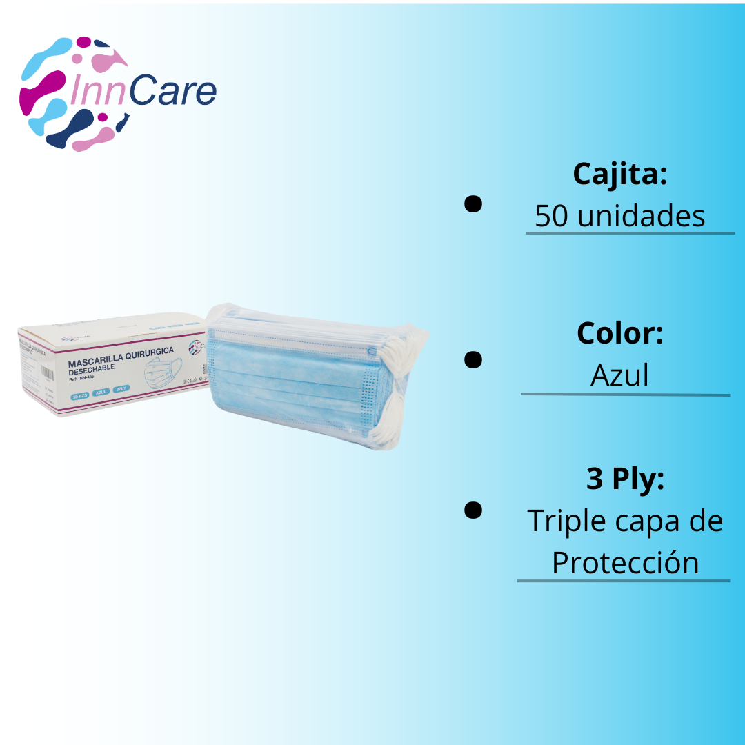 - Tipo: Mascarilla desechable con triple capa de protección (3PLY).